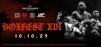 Boxfest XVI takes place on Friday, October 10, 2025 at the Commerce Casino, located at 6131 Telegraph Rd, Commerce, CA 90040. Must be 21. Play responsibly. Gambling problem? Call 1-800-GAMBLER or visit www.problemgambling.ca.gov