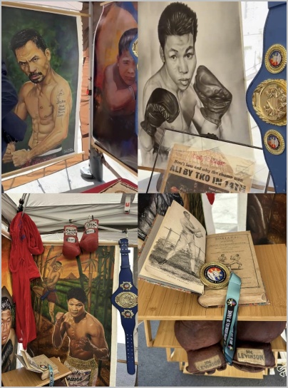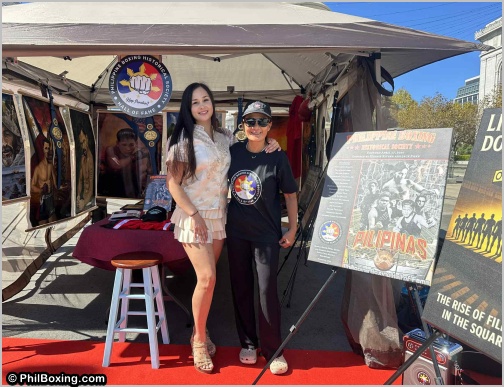 Every exhibit takes many hands to assemble. At the Fulton Plaza booth of the Philippine Boxing Historical Society during Bangon Kabayan: Pistahan sa Fulton, Noel Rivera was joined by his son Grant, his sister Charina, and Charina’s daughter Keanna. Together, they honored their patriarch, Hermie Rivera, one of the pillars of Philippine sports journalism, whose legacy continues through their shared dedication to preserving the nation’s boxing heritage.