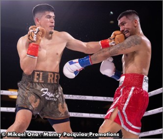 Marking a new beginning for the legendary Pacquiao name, Manny Pacquaio’s eldest son, Jimuel Pacquiao(0-0-1) began his professional boxing campaign by thrilling the sold-out Pechanga crowd with a thrilling majority draw against Chicago native/high school English teacher Brendan Lally (0-0-1). In the co-main event marking the pro boxing debuts of both fighters, Pacquiao and Lally stood toe-to-toe throughout the four-round, non-stop extravaganza, trading shots to the head and body, as the contest featured numerous momentum changes.
