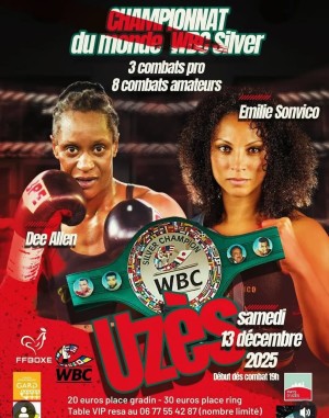 A high-stakes women’s bout is scheduled: Emilie Sonvico and Dee Allen will meet in Uzès, France, for the vacant WBC Silver welterweight championship.