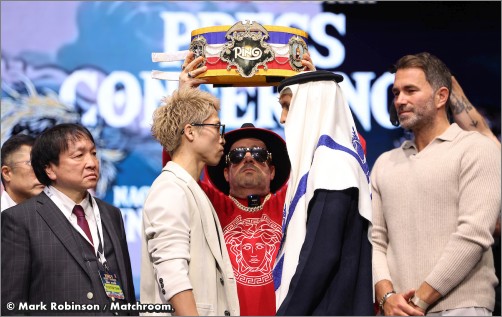 "Welcome everybody here to Riyadh as we wrap up what has been an incredible year for Riyadh Season and The Ring Magazine. The growth of boxing here in Saudi Arabia and the vision of His Excellency Turki Alalshikh has been inspiring and breathtaking. We have had just about everything in the Kingdom – but we have never had the invasion of the Japanese. Until now. That new force of world boxing, which we see up here today. Of course, this is the ‘Night of the Samurai’. But I am hearing in the room today a strong atmosphere for Mr Picasso and for many of the opposition teams here today and it is very much, 'Viva Mexico Cabrones!’ We know what the Mexican fighters are coming here to do: they come to fight. And on Saturday, there will be a war going on between Mexico and Japan, in what I think is one of the best cards we have seen here in Saudi Arabia. When you look over the recent times, and of course being shown on the Global Home of Boxing, DAZN, we have seen it all. Previously, we have had the Undisputed Heavyweight World Championship twice and earlier this year, the Light Heavyweight Undisputed Championship with Dmitry Bivol and Artur Beterbiev, not to mention Canelo Alvarez with the Undisputed Super Middleweight Titles. Plus, we have had for The Ring the two epic Eubank-Benn cards in front of over 70,000 fans. We’ve even closed down Times Square [in New York City]. We have seen it all. Despite having crowned so many Undisputed champions, there is only one reigning male Undisputed Champion and that is the great, Naoya Inoue, who is here as the only reigning male Undisputed champion and ready to defend his belts this weekend. This card, of course, is one of the strongest we have seen. There are so many great fighters. You will not want to blink. It’s incredibly exciting and it is a huge night for boxing."