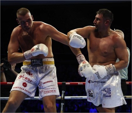 KABAYEL retains the interim WBC title with a controversial stoppage of KNYBA. The fight started badly for Kabayel as he was cut on his right eyelid in the first round. In addition the 6’7” Knyba made good use of his height and reach advantages to make it difficult for Kabayel to get inside and he also landed some good right hand counters. Knyba was still scoring well in the second but Kabayel was getting inside and hurting Knyba with body punches and already the pace looked to be getting to Knyba. In the third a right rocked Knyba and Kabayel connected with some hurtful body punches and Knyba was also cut. Kabayel continued to drive forward landing rights to the head rocking Knyba and when another overhand right crashed against Knyba’s head the referee stopped the fight. Knyba was hurt but it certainly looked a very early stoppage. Kabayel is now hoping the WBC will order Oleksandr Usyk to defend against him but holding the interim title and being a mandatory challenger are not the same thing so he will have to wait and hope. Knyba was in trouble before the stoppage and he would probably been stopped a round or two later at best.