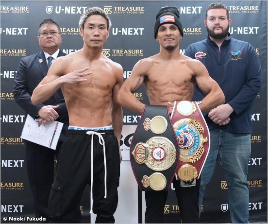 TOKYO, JAPAN — Unified WBO/WBA Junior Flyweight World Champion Rene “Chulo” Santiago of Puerto Rico and former world champion Masataka Taniguchi of Japan both made weight Thursday and are officially set for their highly anticipated world title showdown this Friday, April 3, at the famed Korakuen Hall in Tokyo, Japan.