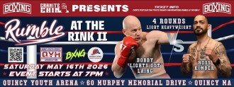 QUINCY, Mass. (April 2, 2026) – An intriguing light heavyweight bout between contrasting-styled Massachusetts fighters, Bobby “Lights Out” Laing (2-0, 2 KOs) and Russ Kimber (3-3, 1 KO), could steal the May 16th “Rumble at the Rink II” show, presented by Granite Chin Promotions, at the Quincy Youth Arena in Quincy, Massachusetts.