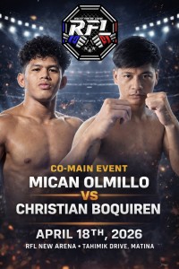 BANTAMWEIGHT Mican “Child Prodigy” Olmillo of Panabo City will fight Christian Jay Boquiren of Kidapawan City in the Reality Fighting League [RFL] on April 18 at the RFL New Arena in Tahimik Drive, Matina, Davao City.