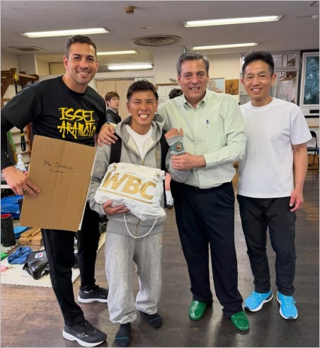 While in Japan, we learned that George Morikawa, creator of the famous anime Hajime No Ippo, had been hospitalized with health issues. Fortunately, he has been discharged and is now recovering at home. Morikawa brought boxing to the world through manga and anime. As a sign of respect and well wishes for his recovery, all the boxers from Saturday’s card signed a WBC mini-belt, which we will deliver to him.