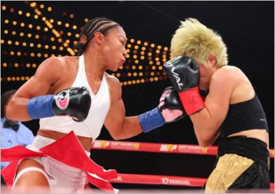 BAUMGARDNER successfully defends the IBF, WBA and WBO belts as she outscores the incredibly tough Korean RE SHIN. In a fight over three minute rounds Baumgardner dominated most of the way before flagging a little late. Over the first five rounds Baumgardner was showcasing the quality and quantity of her performance. She set a fast pace walking forward throwing quick, accurate combinations to head and body and Shin just could not match her. When Shin’s pressure forced Baumgardner onto the back foot she was walking Shin onto a barrage of counters and then sliding away from the pressure. Baumgardner shook Shin badly in the fifth and scored heavily over the sixth. Despite the punishment Shin had never stopped walking forward and Baumgardner began to show signs of tiring from the fast pace she herself had set. Shin won her first round in the sixth. Baumgardner was flagging and Shin just kept on coming and was getting through with some good shots. The seventh was close but Shin seemed to end the round stronger. Rather than trying to stand and trade with the Korean Baumgardner used clever movement to bring the pace down in the eighth and Shin’s output dropped. Baumgardner was back in full control over the ninth and tenth and she outscored Shin in both rounds to win on scores of 98-92 twice and 99-91. There was mention of a fight with WBC/WBO lightweight champion Caroline Dubois but Baumgardner indicated she was more interested in fighting Katie Taylor or Amando Serrano. Shim had lost a majority decision to Caroline Dubois in a WBC title fight in March 2025.